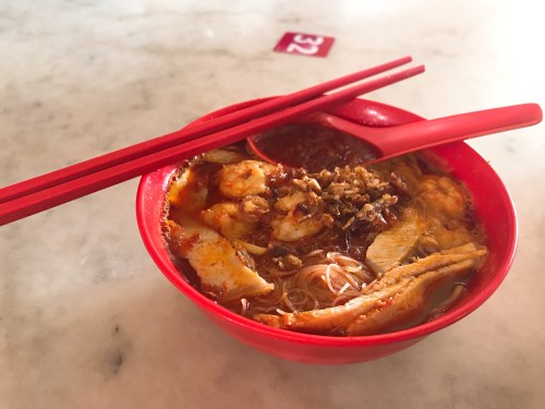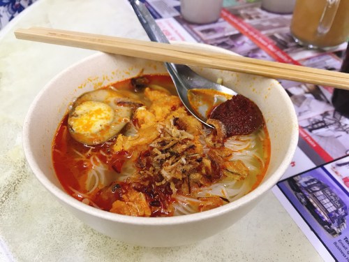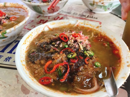 前往極樂寺前必吃的亞依淡巴剎叻沙(Pasar Air Itam Asam Laksa),裡頭滿滿的魚肉,湯底非常濃郁,真的超級好吃!!!