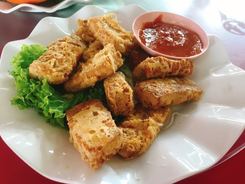 接著到Jalan Free School附近的小攤買炸年糕,地瓜夾著年糕共有三層,口感好特別好好吃