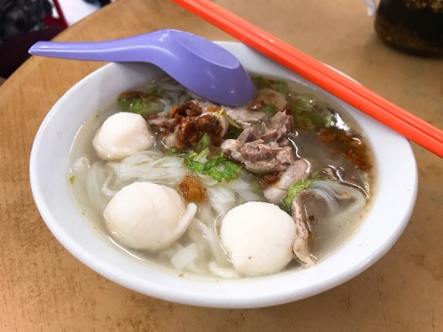 一般粿條湯都是用巴剎裡現賣的西刀魚丸,但這家粿條湯使用的是手工特製的鰻魚丸,而湯底是用鴨和大骨熬成,燙頭非常的甜,魚丸真的超級好吃!